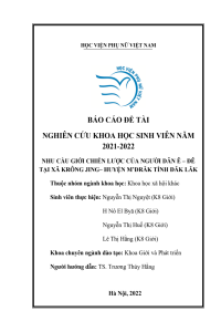 Nhu cầu giới chiến lược của người dân Ê-đê tại xã Krông Jing huyện M’Đrắk, tỉnh Đắk Lắk