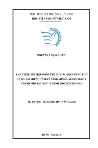 Can thiệp, hỗ trợ nhóm trẻ em mắc hội chứng phổ tự kỷ tại trung tâm kỹ năng sống Galaxyskilis thành phố Thủ Đức - TP.HCM : Đề án thạc sĩ ngành CTXH